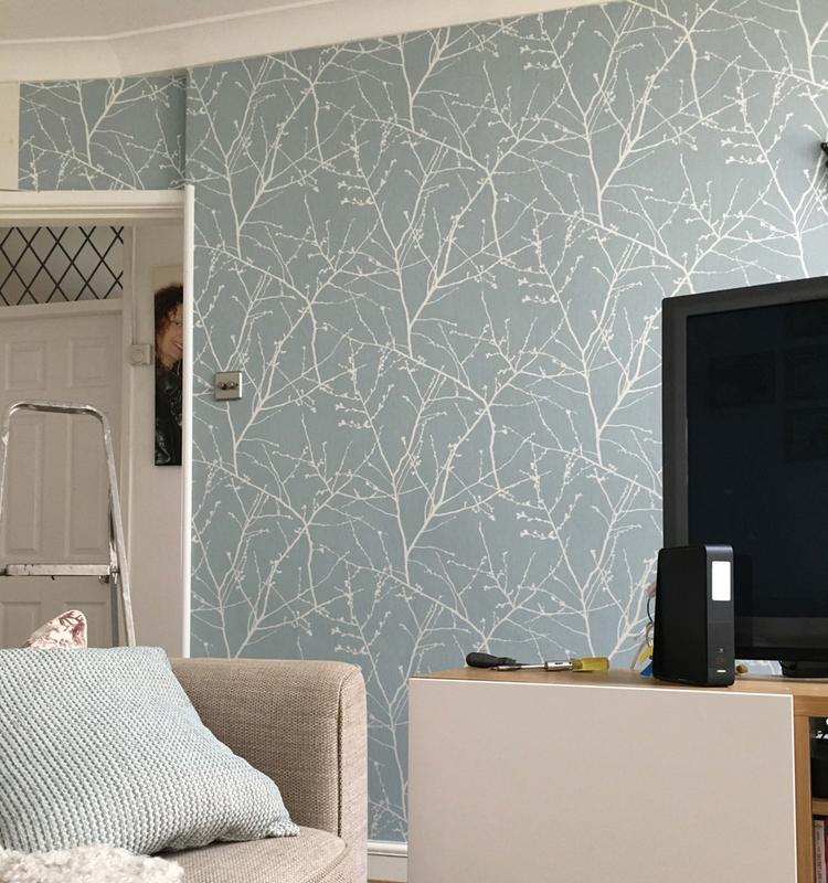 Superfresco Sprig Duck Egg Wallpaper Wilko - Doesn't shrink, so no soaking is required.